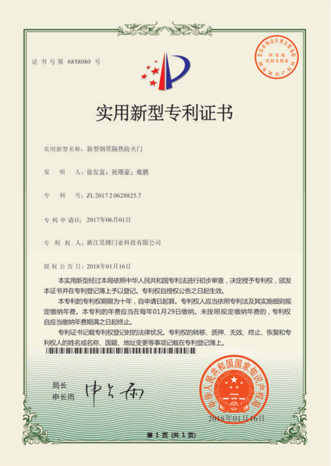 浙江昊博門業(yè)科技有限公司創(chuàng)建于2009年,公司位于享有“中國木門之都”、“消防器材之鄉(xiāng)”的浙江——江山。公司專業(yè)從事鋼質(zhì)、木質(zhì)、鋼木質(zhì)防火門,裝甲進戶門,避難間防火門、耐火窗及防火卷簾門系列產(chǎn)品的研發(fā)、制造、銷售和安裝服務(wù)。旗下有全資子公司浙江昊博消防科技有限公司,專業(yè)從事木質(zhì)防火門、避難間防火門的研發(fā)、生產(chǎn)。